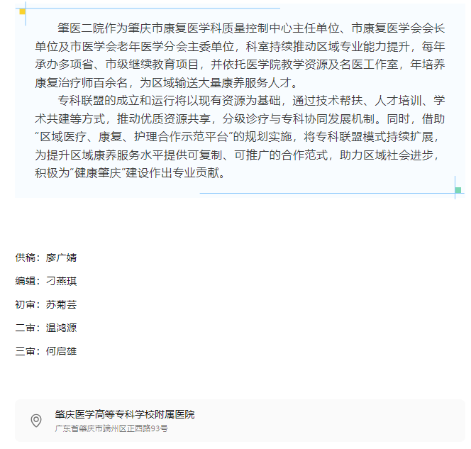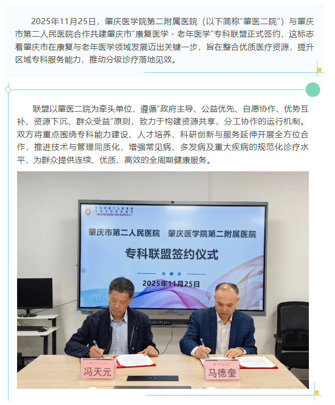 专科联盟开新局,强强联合共发展——肇医二院牵头成立“康复医学・老年医学”专科联盟
