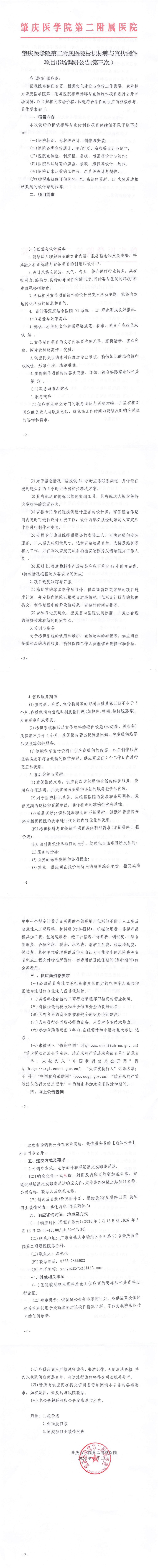 肇庆医学院第二附属医院标识标牌与宣传制作项目市场调研公告(第三次)