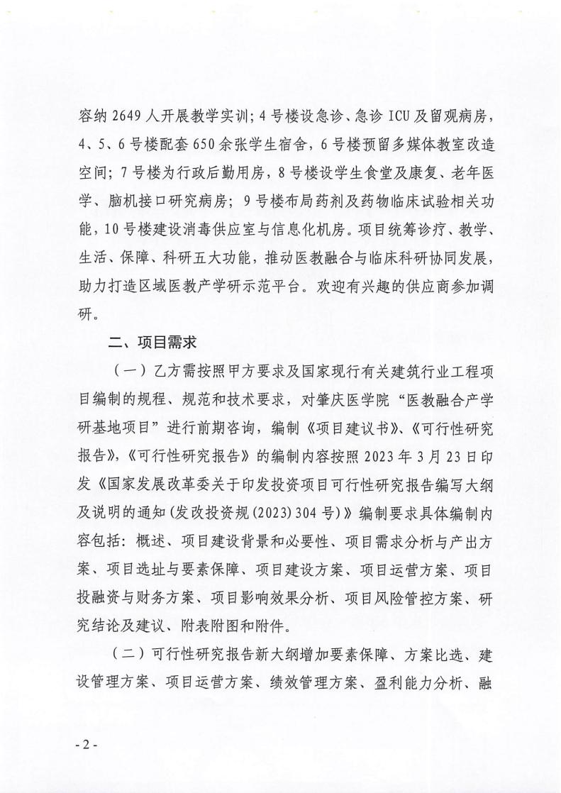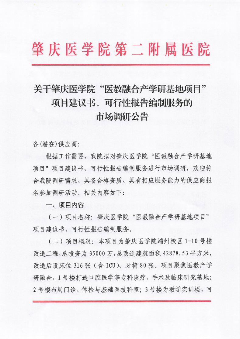 关于肇庆医学院“医教融合产学研基地项目”项目建议书、可行性报告编制服务的市场调研公告